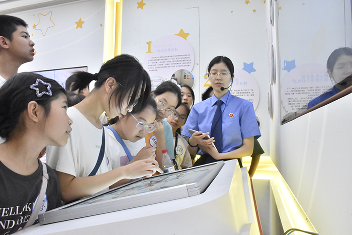 为守护青少年暑期安全,切实提升未成年人法治意识,8月,钟楼区院联合北港街道、新闸街道及辖区中小学开展了主题为“暑期法治守护”的检察开放日系列活动,先后邀请未成年学生、家长、教师、社工等100余人走进检察机关,通过实地参观、互动普法、职业体验等多种形式感受法治力量,让法治的种子在青少年心中生根发芽。