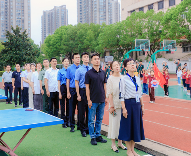 国庆来临之际,钟楼区院团支部受邀参加东方小学与钟爱学校联合举办的“强国复兴有我 童心筑梦未来”主题升旗仪式,共庆祖国华诞。