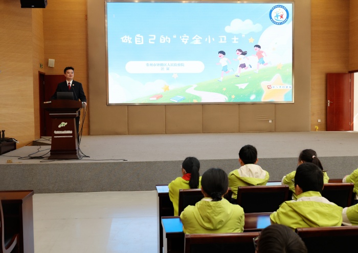 3月25日,该院党组成员、政治部主任汪寅以《做自己的安全小卫士》为题,为常州市实验小学平冈校区的学生们定制了一堂互动式法治课。针对小学生的认知特点,通过趣味问答等形式,将网络安全、防校园欺凌等知识融入生活场景,让孩子们在欢声笑语中学会了如何识别危险、远离侵害,掌握了自我保护的本领。